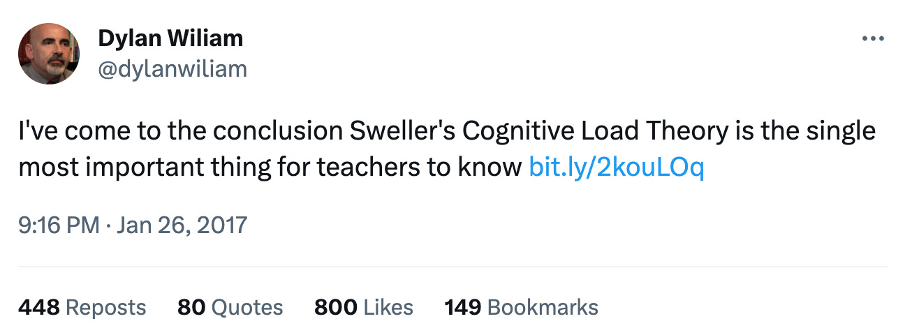 Distinguished educator, Professor Dylan Wiliam, underscored the importance of CLT in a 2017 tweet: